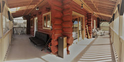 Tucked away on a hillside, overlooking sloping orchards, vineyards, and incredible valley views, our guesthouse accommodates up to 6 people who can enjoy the privacy of a home away from home. Enjoy the outdoors with a wrap around screened deck, hot tub, BBQ, landscaped grounds, fire pit, and the unique wildlife habitat that is so special to the Similkameen Valley. Our three level log home is fully furnished. The main floor consists of a well equipped kitchen, dining area, four piece washroom with a claw foot tub, and a bedroom with a double bed. Savor the upstairs master, and open loft bedrooms with their cathedral windows, queen size bed, double bed/office area with a two piece washroom. In the garden level room, relax by the fire in the reading room, enjoy the panoramic mountain view in the lounging room which includes a double sofa bed with tv with Netflix, or simply make use of the facilities available in the laundry room. Harvest Moon Guesthouse supplies all linens, towels, and environmentally sensitive amenities.